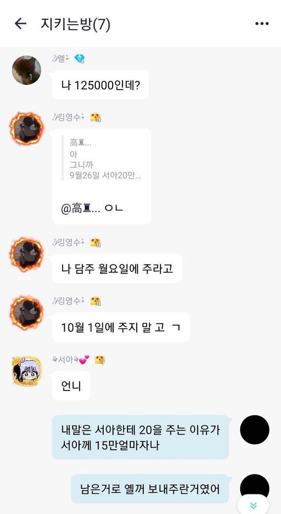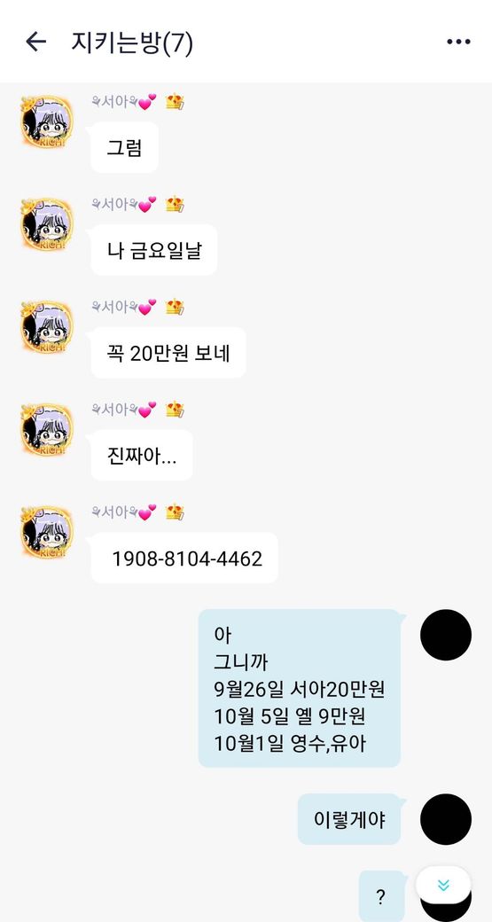 지금 사진에서 볼때 지수가 저이고 나머지가 제가16000원~30000원정도 위플선물들을 받고 100000~200000 선물를 주겠다고 하고 못지켜서 이런 상황인데 어떤 죄가 성립될까요?