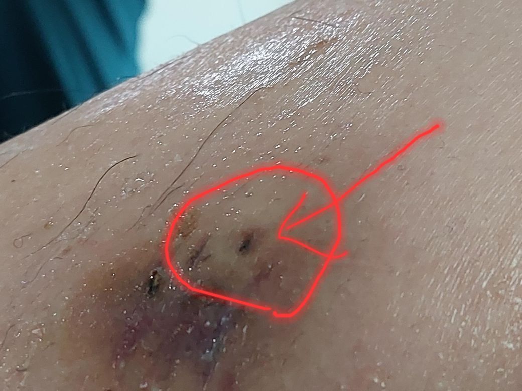 피지낭종 제거수술후 실밥뽑고 벌어짐 반복 재봉합 한달넘게 고생하다가 딱쟁이 생기고 상처부위가 이상한건지 지저분해서요 빨간색으로 표시한 노란부분 낭종 재발아니겠죠? 첫번째 사진은 방금전 딱쟁이 떨어지기전 두번째 사진은 딱쟁이 떨어진상태입니다 상처부위랑 노란 부위 어떤지 봐주세요*딱쟁이 떨어져서 후시딘 발라서요 요양병원 입원중인데 소독2틀에 한번씩합니다