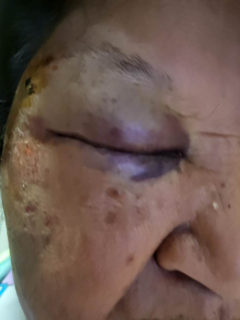 얼굴 쪽 골절 등의 문제와 뇌출혈 여부를 감별해 보는 것이 필요해 보입니다. 관련해서는 성형외과 및 신경외과적으로 진료 및 검사를 받아보는 것이 필요해 보입니다. 아니면 응급실로 가셔서 검사를 받아보는 것도 괜찮은 생각입니다.