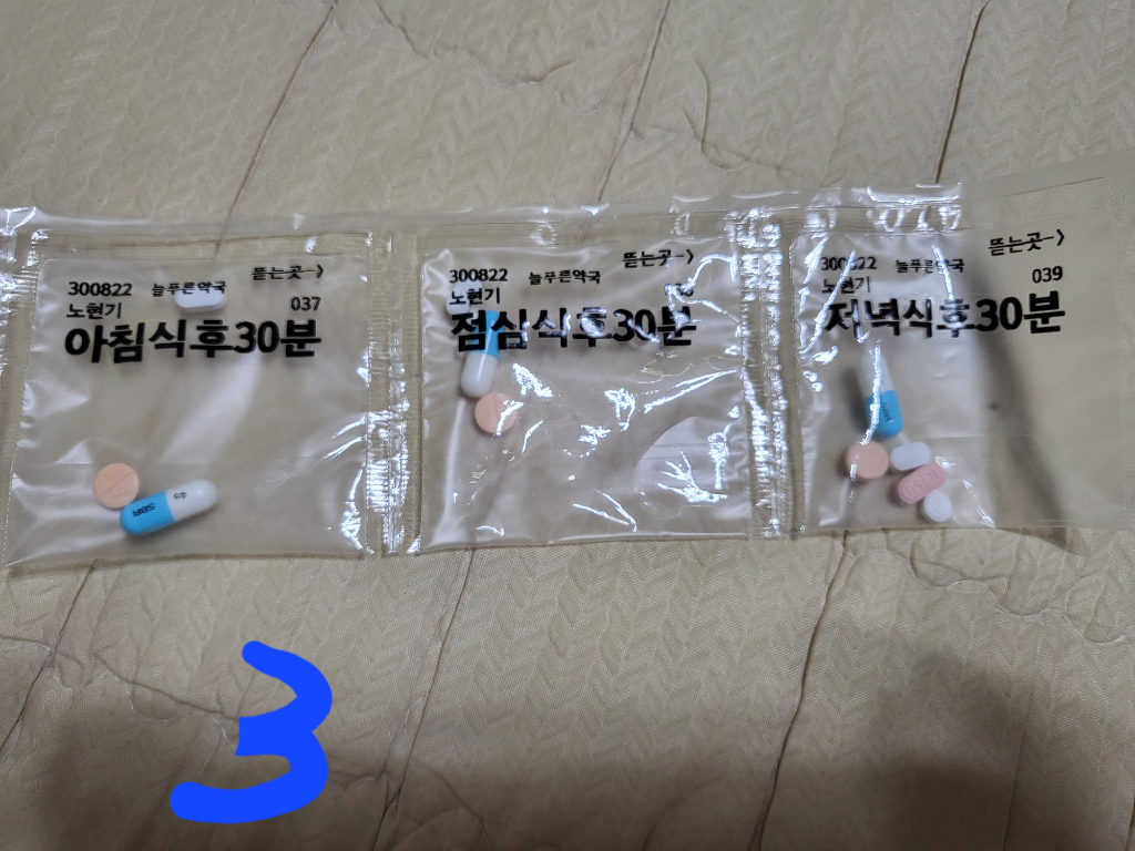 이렇게 사진으로 보여주시면 전혀 약품식별이 되지 않습니다.. 약을 처방받은 곳에 내원하여 약을 모두 보여주시고 문의하시는 것이 나을 것으로 생각됩니다.