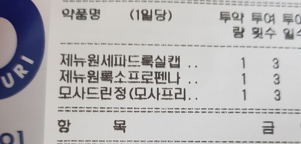 그리고 타이레놀 한알 복용했어요.