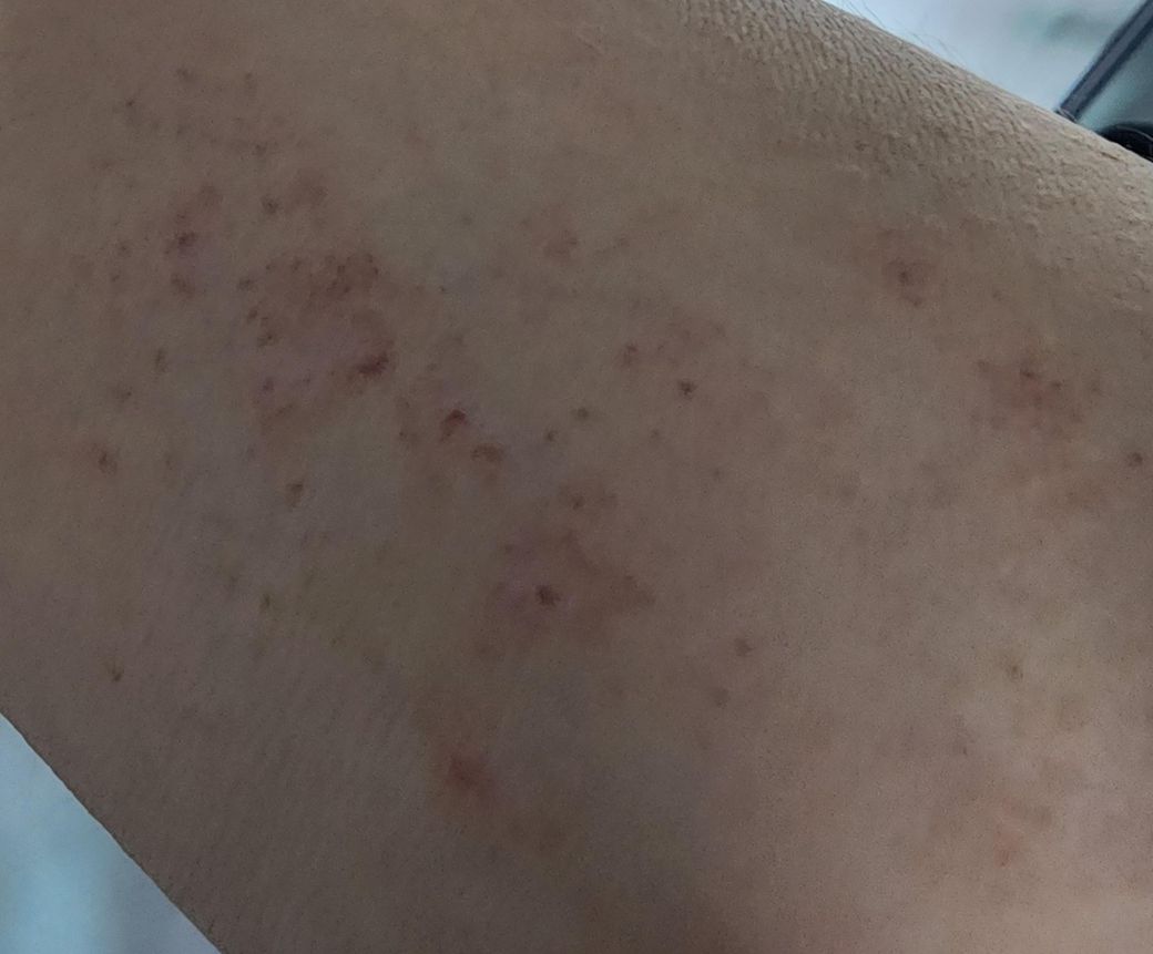 체온은 정상인데 계속 덥고 땀나며 몸에 붉은 점이 생겼습니다