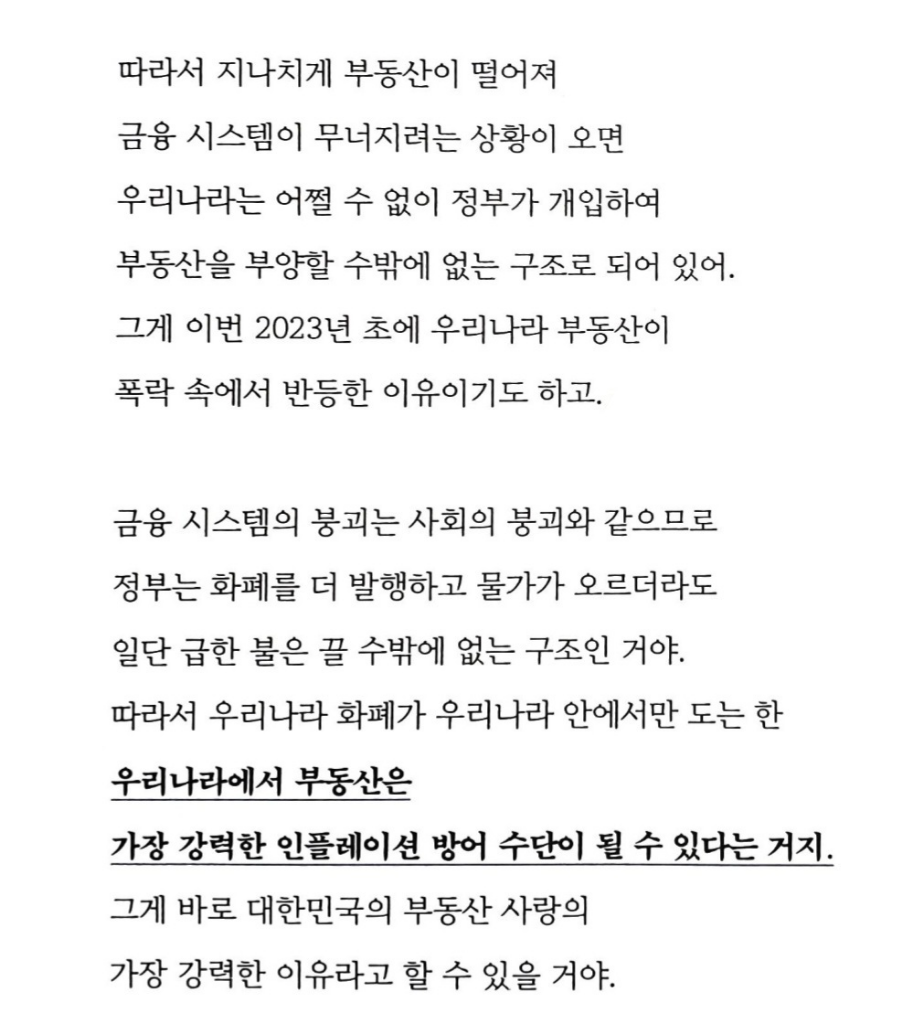 인프레이션 방어수단으로 100%라고 장담할 수는 없습니다 지방을 제외한 서울이나 대도시가 아니라면요. 일단 부동산은 유한한 자원인 땅에 기반하여 생산되며, 인구 증가와 도시화로 인해 수요가 증가할 수 있습니다