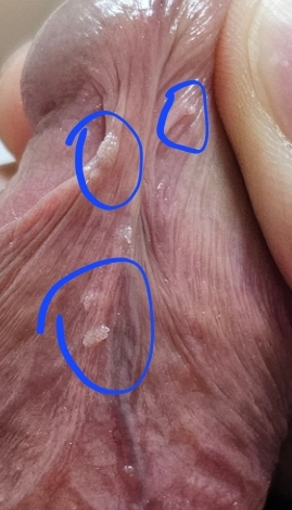 진주양구진으로 보입니다. 문제되는 병변은 아니지만 제거를 원하신다면 비뇨기과를 방문해보시는 것이 좋겠습니다.