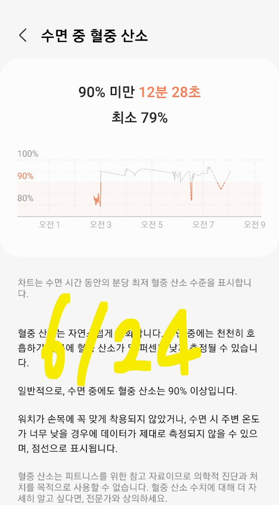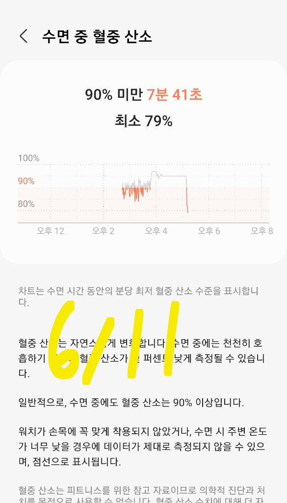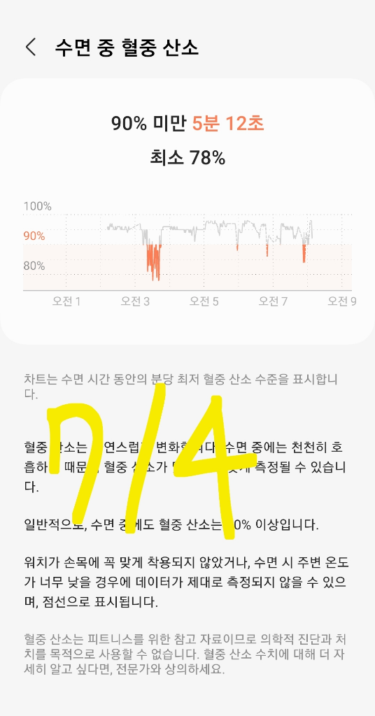 수면중 산소포화도가 자주 낮게 나와요(삼성워치)