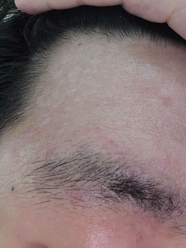 어느날 눈썹에 뾰루지가 생기더니 번졌습니다...여드름처럼 고름이 차거나 하지는 않고 뾰루지 가운데에 구멍(?) 같은게 있습니다.