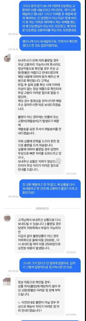 지퍼가 며칠을 끙끙거려도 안 내려가길래 문의했더니 업체 측에서 회수해 갔습니다. 업체 측은 이상이 없다고 하였고, 저는 다시 돌려달라고 했으나 단순변심 교환이므로 되려 저보고 택배비를 내놓으라고 합니다.