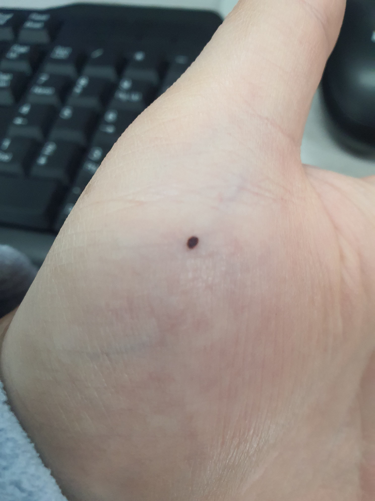 침착이 되어서 그냥 점으로 남을 가능성도 있어 보입니다. 외관상 보기 싫어서 제거를 희망한다면 피부과에서 시술을 받으시길 권고드립니다. 혼자서 바늘로 도려낸다거나 하는 것을 추천드리지 않습니다.