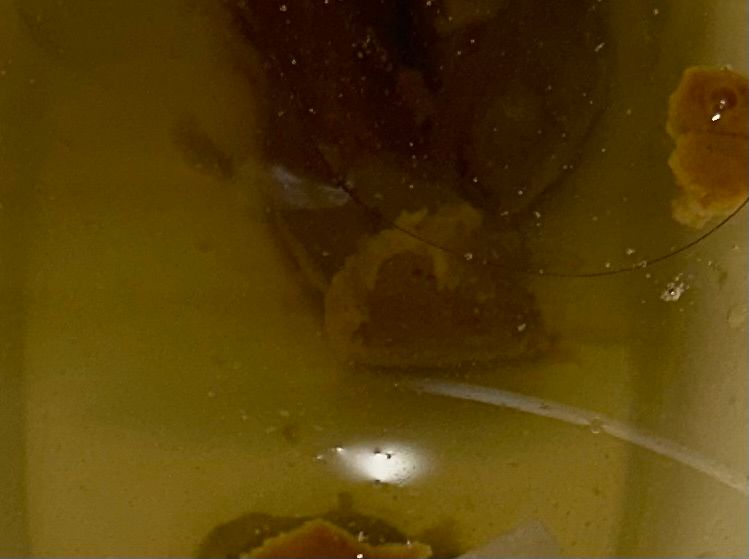 과도한 기름진 식사 또는 흡수되지 않은 지방질의 가능성이 생각됩니다.