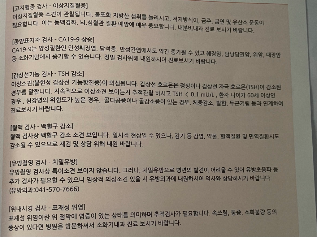 종합건강검진을 받았는데 ca19-9수치와 갑상선 수치 자문구합니다