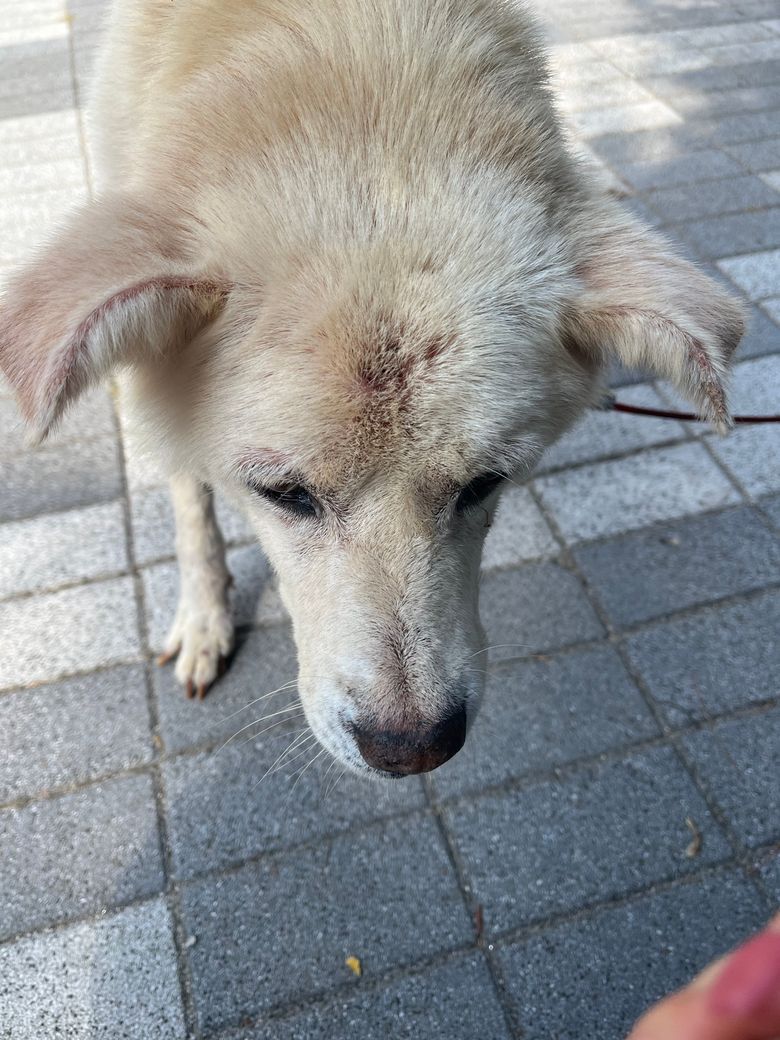 아 그리고 야생동물한테 물린건지 이마에 이빨자국도 있어요. 피부병이랑 관련이 있는건지 모르겠지만.. 이 강아지 진돗갠데 나이가 좀 많은 강아지에요! 열세살정도 됩니다 기력도 많이 없어요
