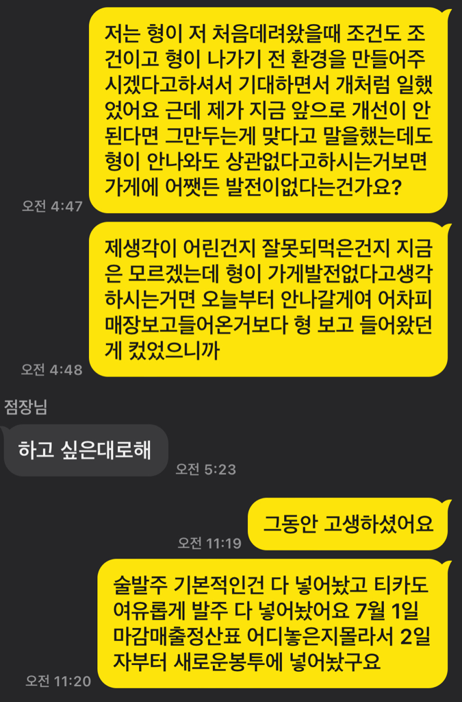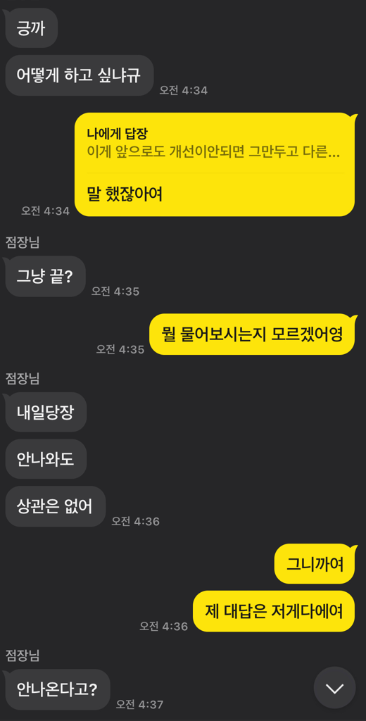 사용자가 “하고 싶은대로 해”라고 했으므로 퇴사에 대해 동의한 것으로 볼 수 있습니다. 따라서 퇴사와 관련하여 문제가 발생하지는 않을 것으로 봅니다.