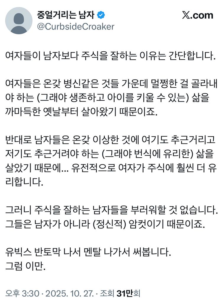 여자들이 남자들보다 주식 투자를 잘하는 이유는 뭔가요?