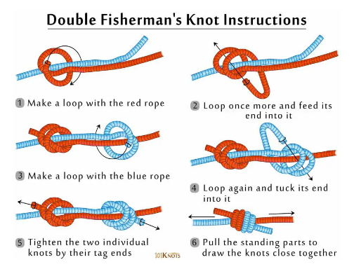 이중 피셔맨즈 매듭(Double Fisherman's Kont Instruction)을 추천합니다.
