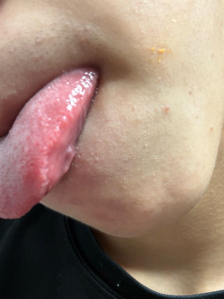 다만, 4주 이상 지속되면서 점점 커지거나, 통증·출혈·딱딱하게 만져지는 변화가 생기면 이비인후과 또는 구강악안면외과 진료를 권합니다. 현재 상태만으로는 급히 병원에 갈 상황은 아니며, 경과 관찰로 충분해 보입니다.