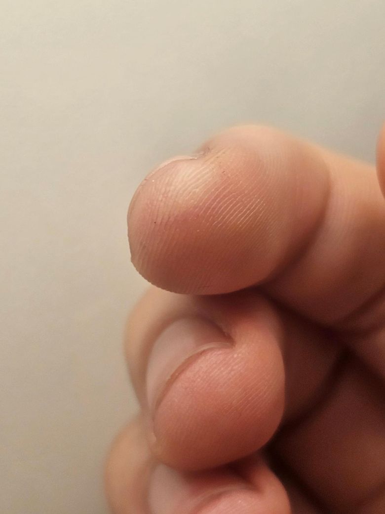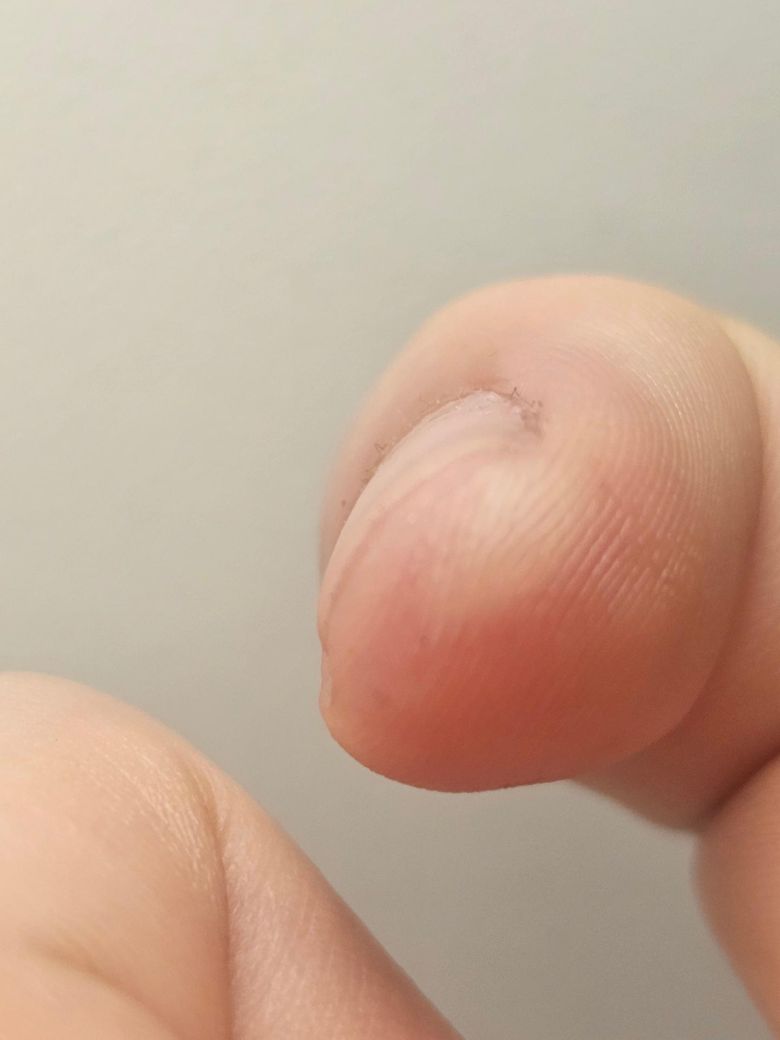 아이스팩 처치 이후 검지 끝 부분이 하얗게 되었습니다.