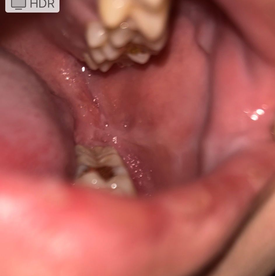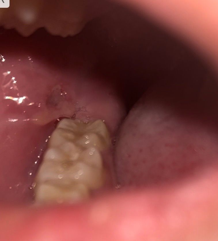 현재 사진상 입안에 구내염이 생긴것으로 보입니다. 시간이 지나면 저절로 낫게 되나, 염증이 덧나지 않도록 헥사메딘 가글액과 같은 가글액으로 소독하여 주길 권합니다.