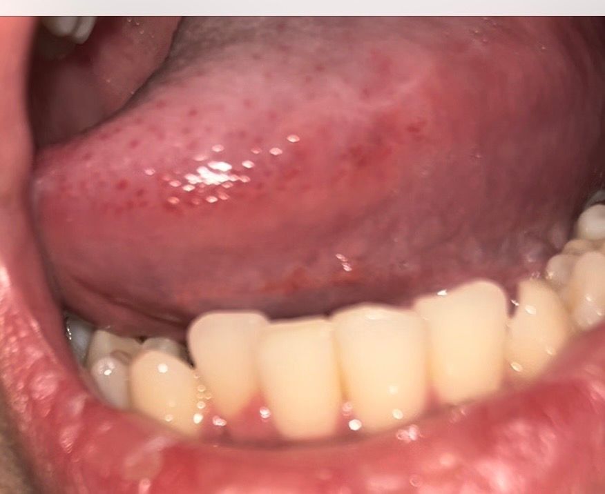 사진으로만 봤을 경우에는 혀조직에 염증이 생긴것으로 보입니다.