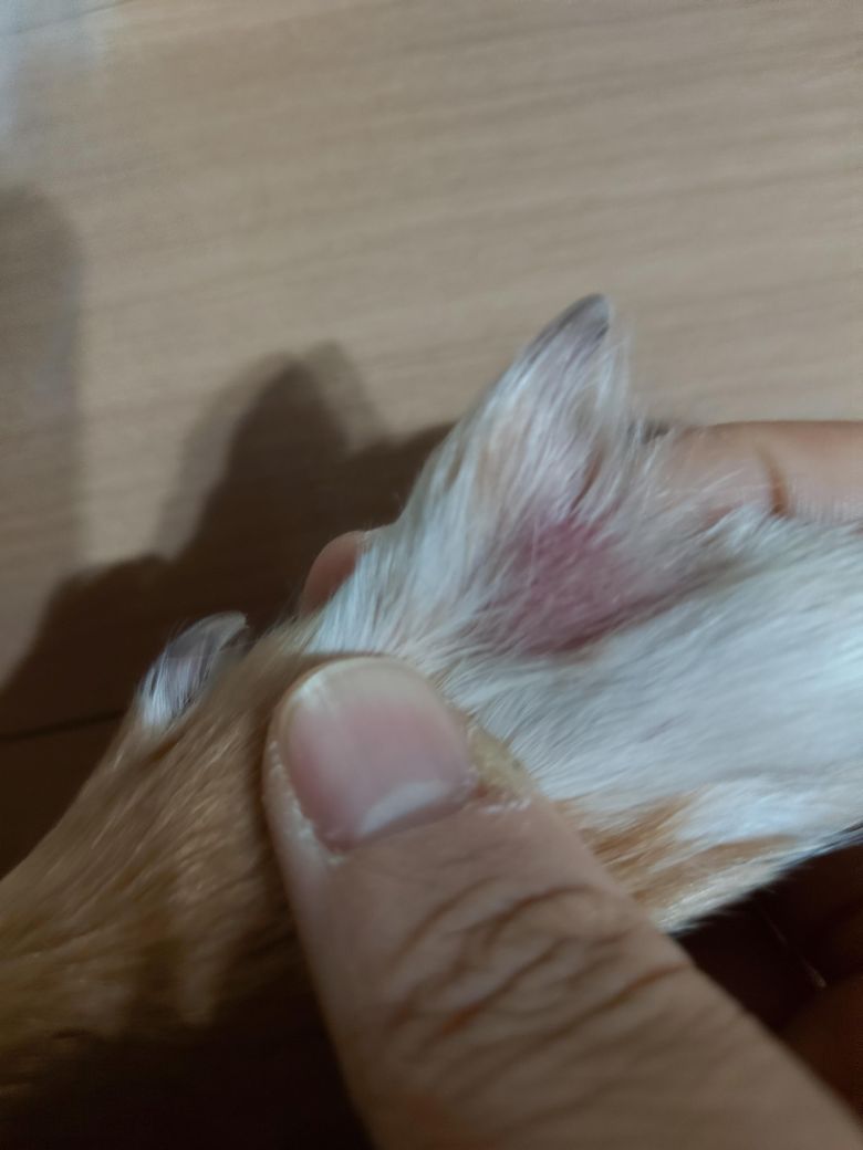 강아지 발바닥 왼쪽에 1번째 발가락 사이에만 빨개요