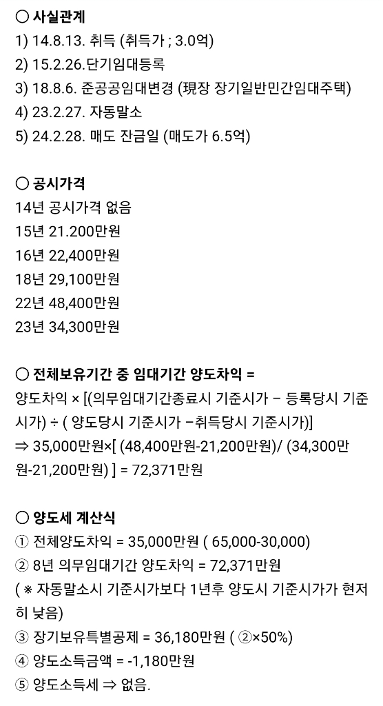 공시가격을 따져야하는게 맞는건지, 실제 양도차익만 고려하면 되는건지 궁금합니다. 8년 임대후 1년더 임대했는데 추가로 1년 임대한것에 대해 추가공제가 얼마나 더 있는건지도 궁금합니다.