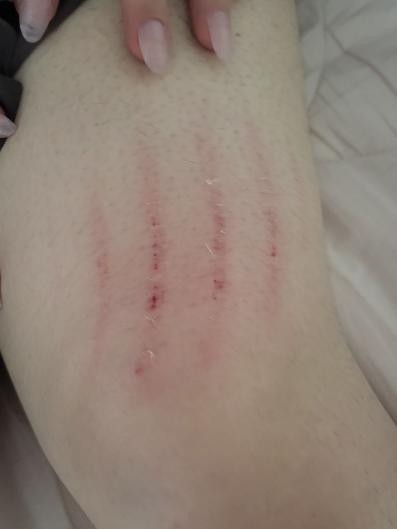 바지를 입은 상태에서 넘어지면서 마찰로 인한 상처로 생각됩니다.