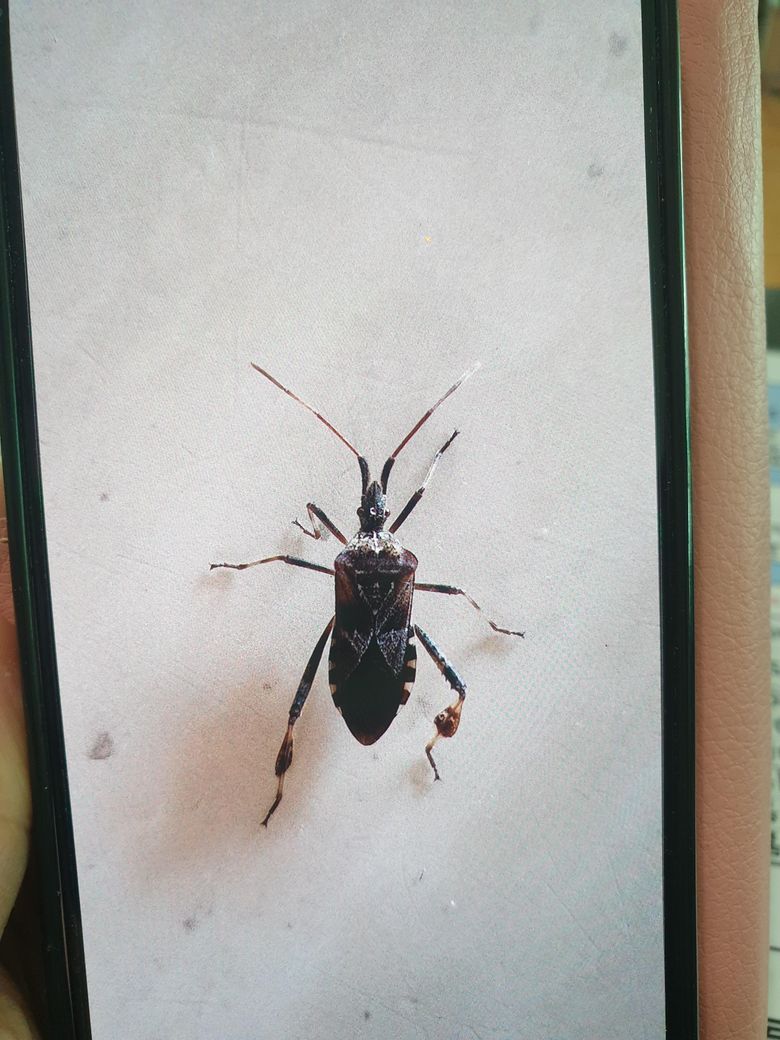 해당 벌레는 소나무허리노린재라는 벌레 같습니다. 이 벌레는 외래종으로 2010경에 우리나라에 나타났다고 하면 소나무에 피해를 주는 해충이라고 합니다.