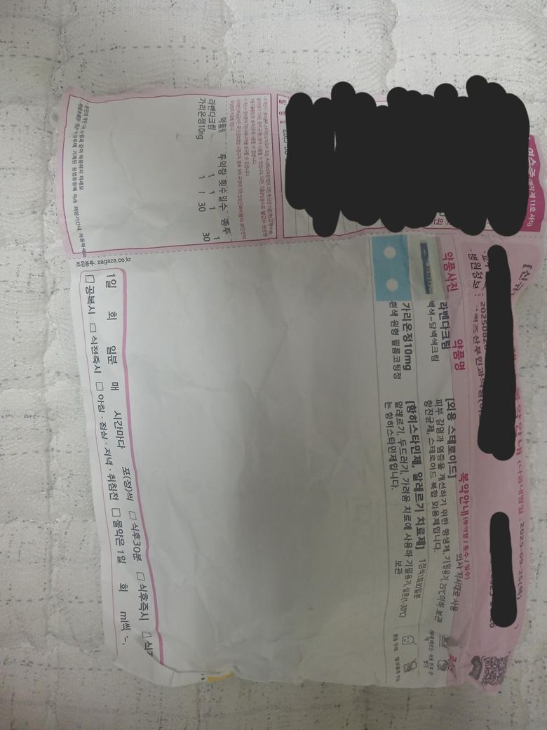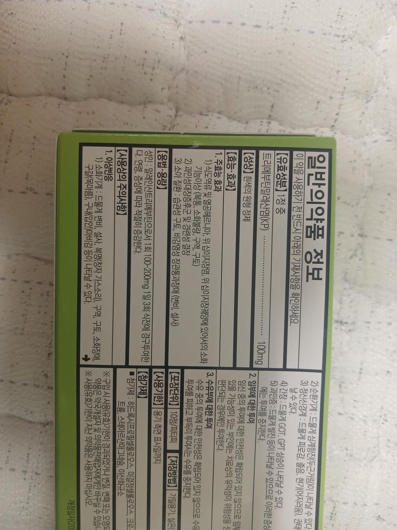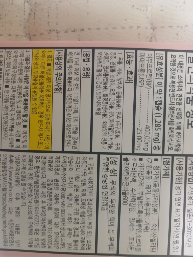 그러고 사진 중 맨 왼쪽부터해서 5번째에 있는 병원에서 처방 받은 약이 아닌 종이각에 들은 약이요
