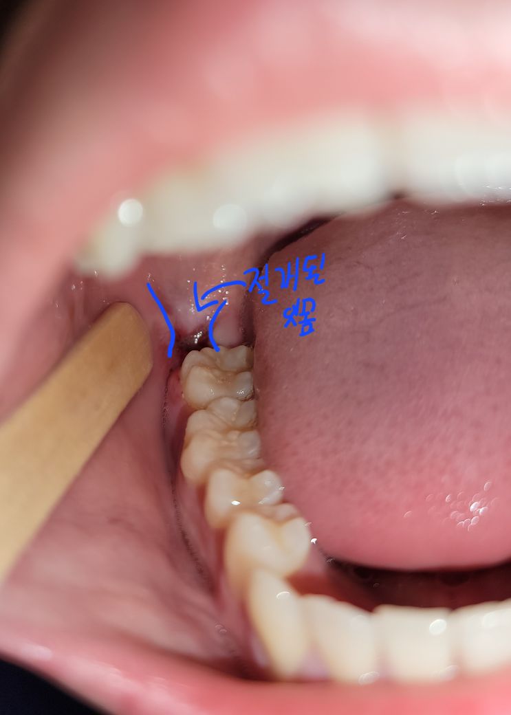 사랑니 발치 후 잇몸 실밥이 제대로 된건지 모르겠어요. 잘 아문거 맞나요? 반대쪽에 비해 너무 잘못된거 같아요