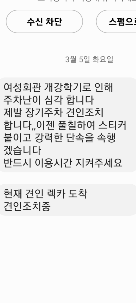 계속된 고지에도 주차할 권한 없이 장기주차를 한 경우에는, 업무상 필요에서 견인 등 조치를 취할 수는 있을 것입니다.