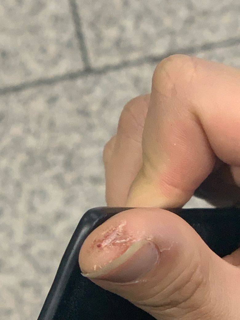 가장자리 뜯김, 동그랗게 하얀 살 노출
