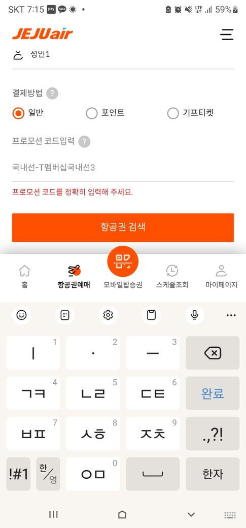재적용 시에는 프로모션 코드 입력란에 '국내선-T멤버십국내선3, 제선-T멤버십국제선3'을 입력하라 돼있습니다. 그래서 그대로 적었는데 인식이 되지 않았습니다. 제가 잘못 이해한 건가요?