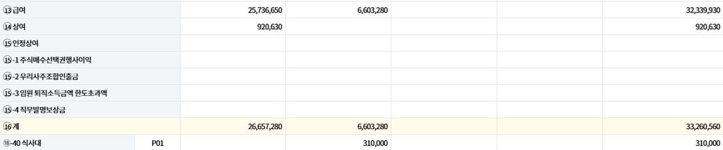 궁금한 부분이 연간 보수총액(33,260,560)에서 식사대인 310,000원을 뺀 금액이 연간 보수총액인가요?