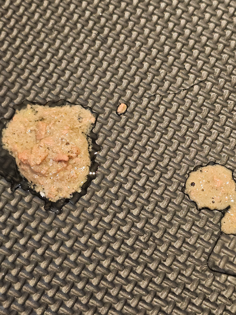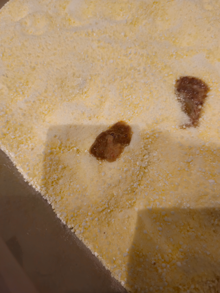 설사는 약간 콧물같이 늘어나고 전형적인 변색에 아이보리색(키튼츄르추정)조금 정도고 사진보단 붉은기 없습니다.