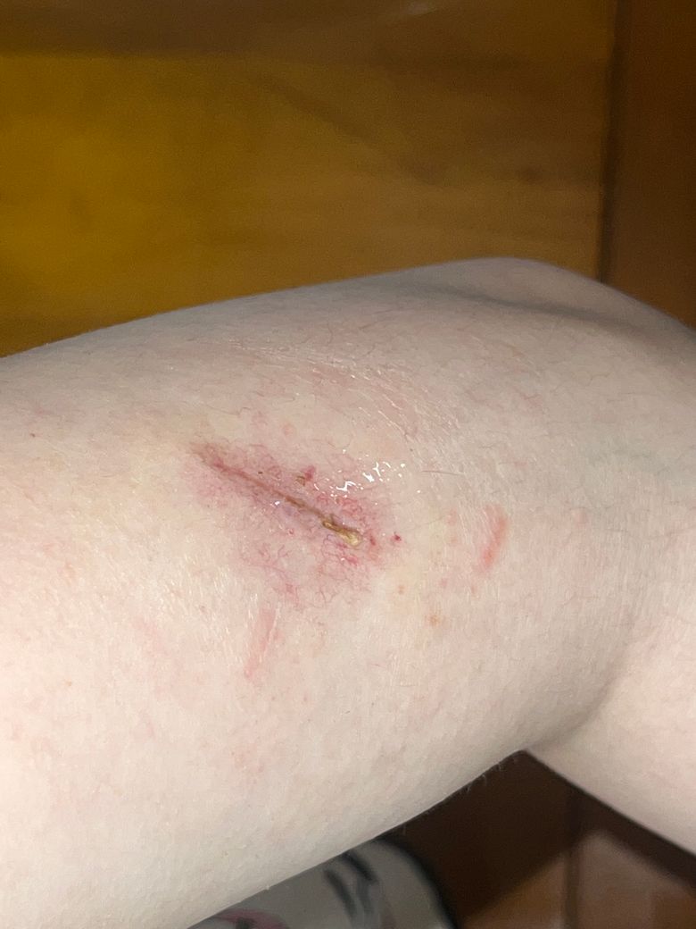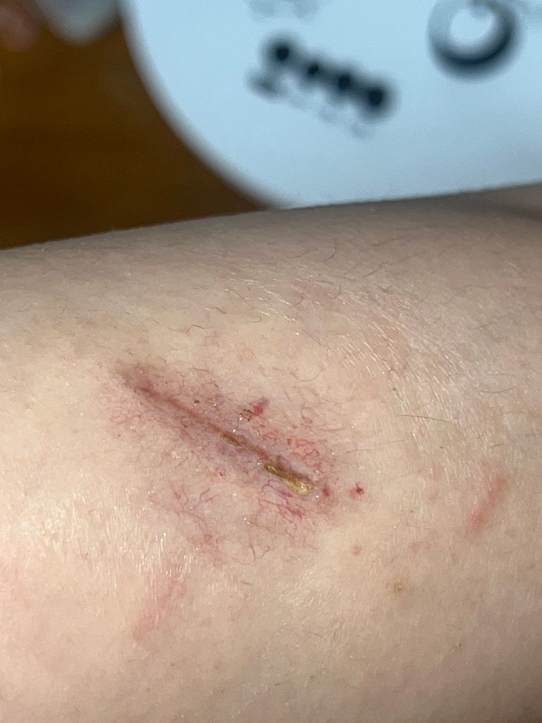 이전 상태를 알 수 없으나, 잘 아물고 있는 것으로 사료됩니다.