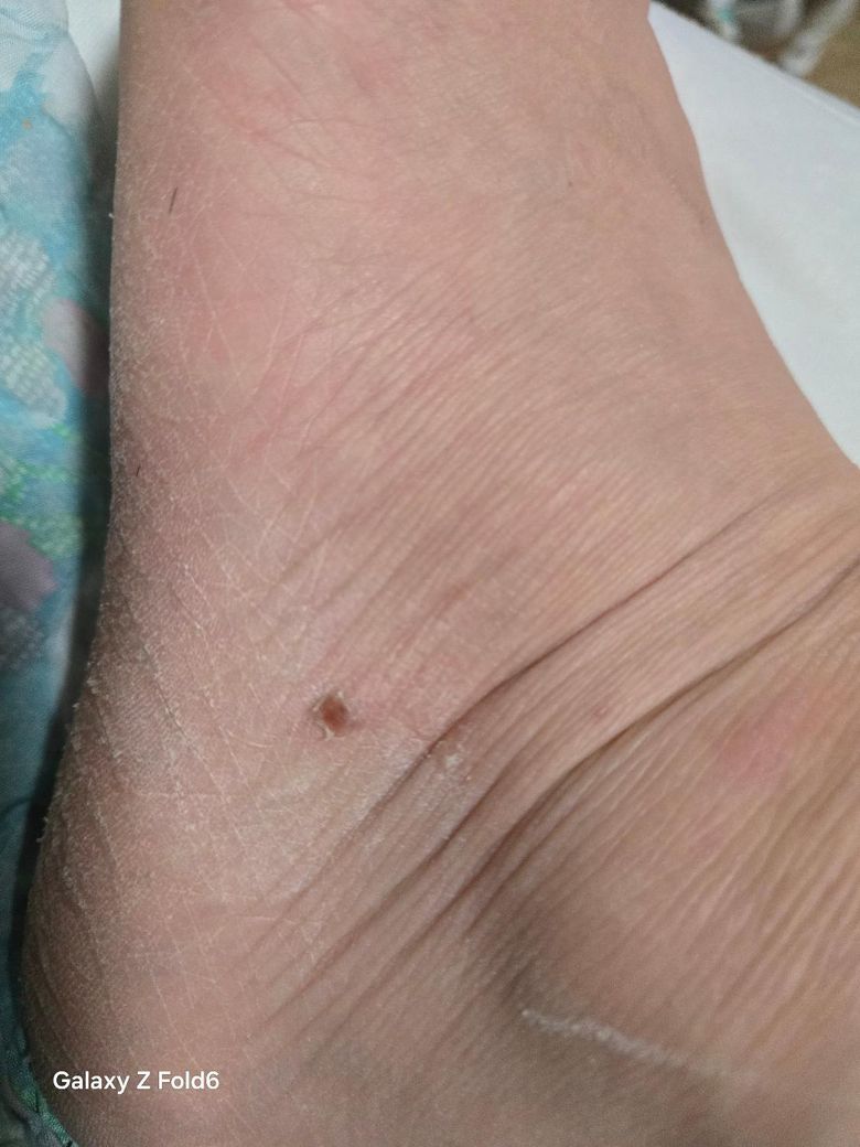 점인줄 알았는데 누르면 아프고 가만히 있을땐 괜찮습니다 발뒤꿈치가 잘 갈라져서 각질제거 하다가 만졌는데 아퍼서요 점처럼 진하진 않고 겉표면이 벗겨져 있어요 사마귀같은건지 궁금합니다 암은 아니겠죠?