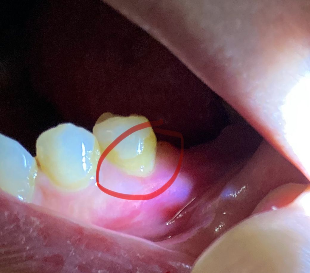 자세히 불을 비춰보니 잇몸이 내려가 있고 뿌리가 약간 노출되어 있는것처럼 보입니다.