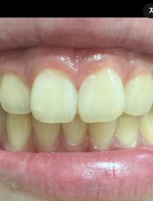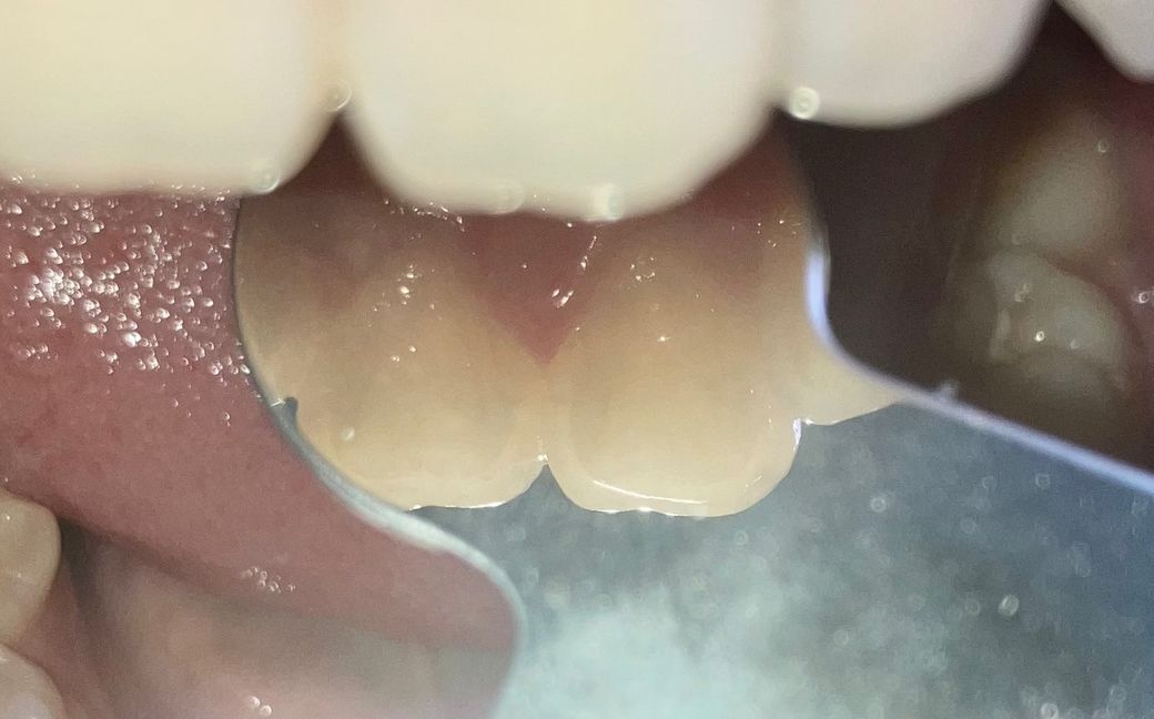 레진이 떨어진 것으로 보이진 않고 레진 접착제가 치아 사이에 있진 않습니다. 이물질 같습니다.