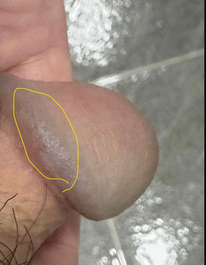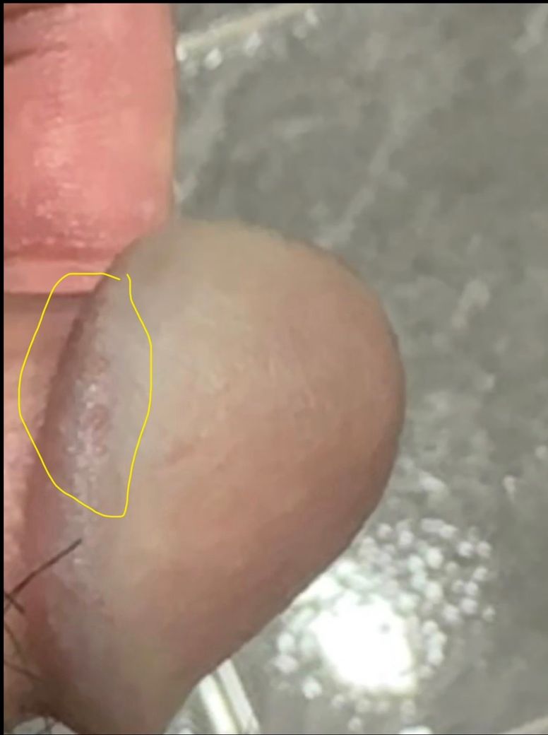 가장 가능성이 높은 것은 단순 접촉성 피부염 또는 자극성 반응입니다. 샤워 후에 특히 심해진다고 하셨는데, 이는 물리적 자극이나 비누, 세정제 성분에 의한 피부 반응과 전형적으로 일치합니다. 귀두 테두리 쪽 빨간 병변이 샤워 후 악화되는 패턴은 접촉성 피부염에서 매우 흔하게 나타납니다.