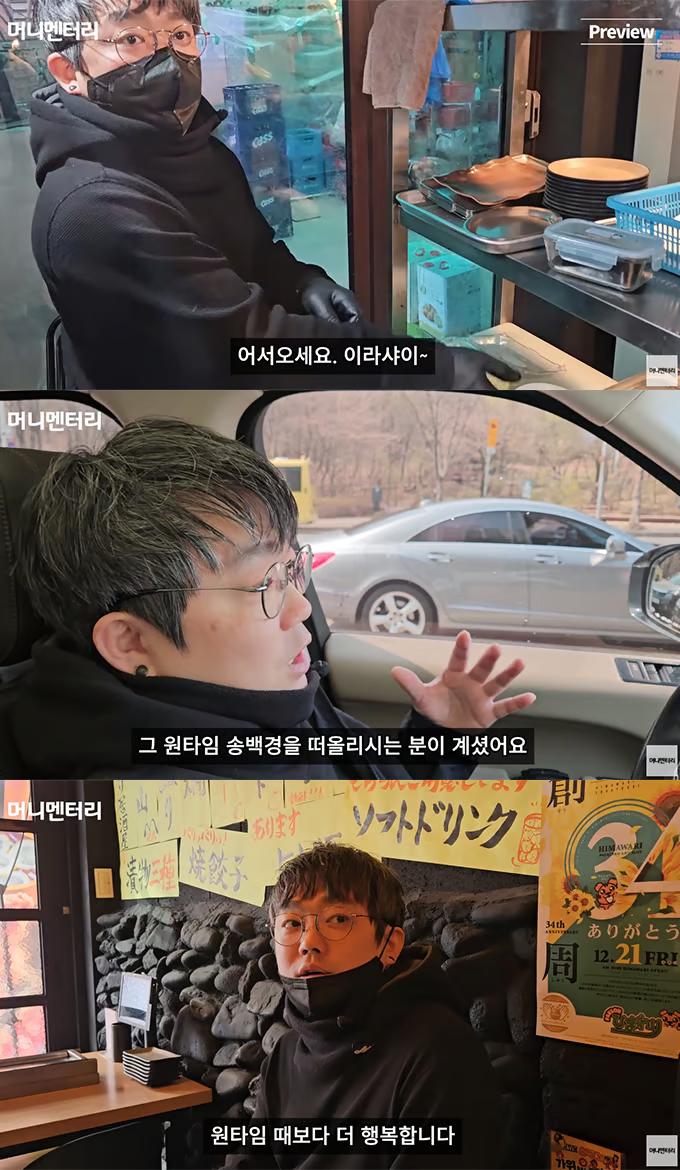 현재 송백경님은 10년정도 밥집을하시며 자영업을 하시다가 현재는 권리금을 받아 꼬치전문점을 운영하고 계신다고 하네요.