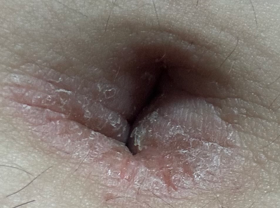 배꼽 주변으로 하여서 발적이 있는 것으로 보아 자극에 의해서 염증이 생겼을 가능성을 고려해볼 수 있겠습니다. 계속 증상이 지속된다면 병원에서 진료 및 처방을 통한 치료를 받으시길 권고드립니다.