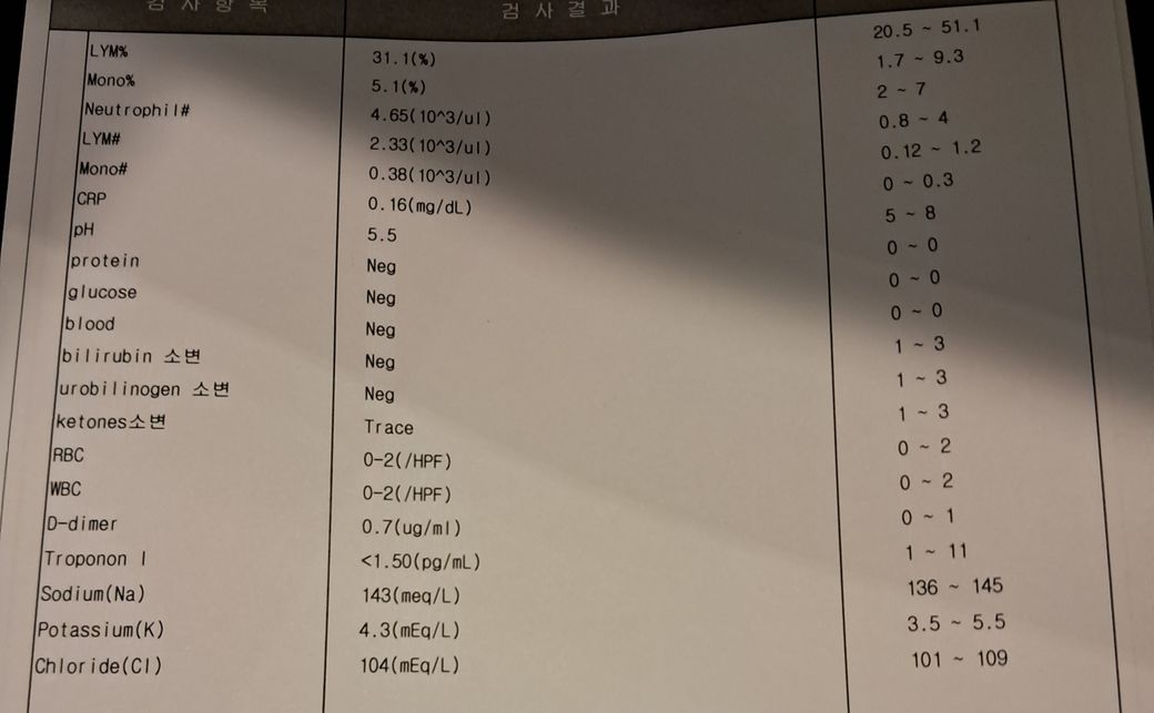 심장검사때 진행한 혈액검사 결과 좀 봐주세요