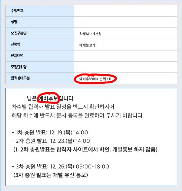 대학교 수시 합격자 발표 조회해서, 예비후보(예비순위: 1)이 나오면, 합격이에요? 불합격이에요?