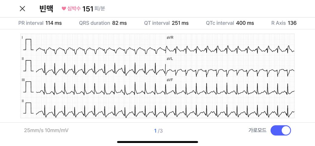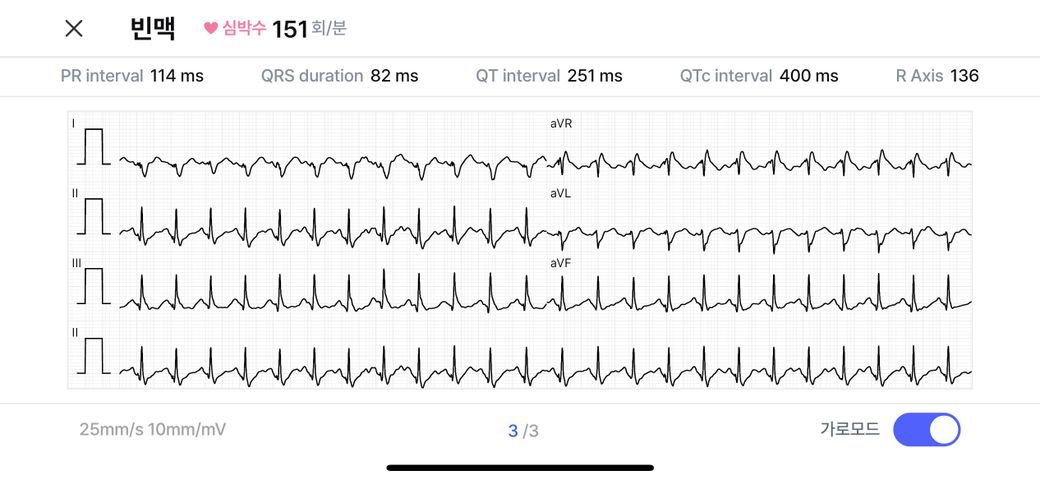 163까지 심박수가 치솟아요 심전도좀 봐주세요