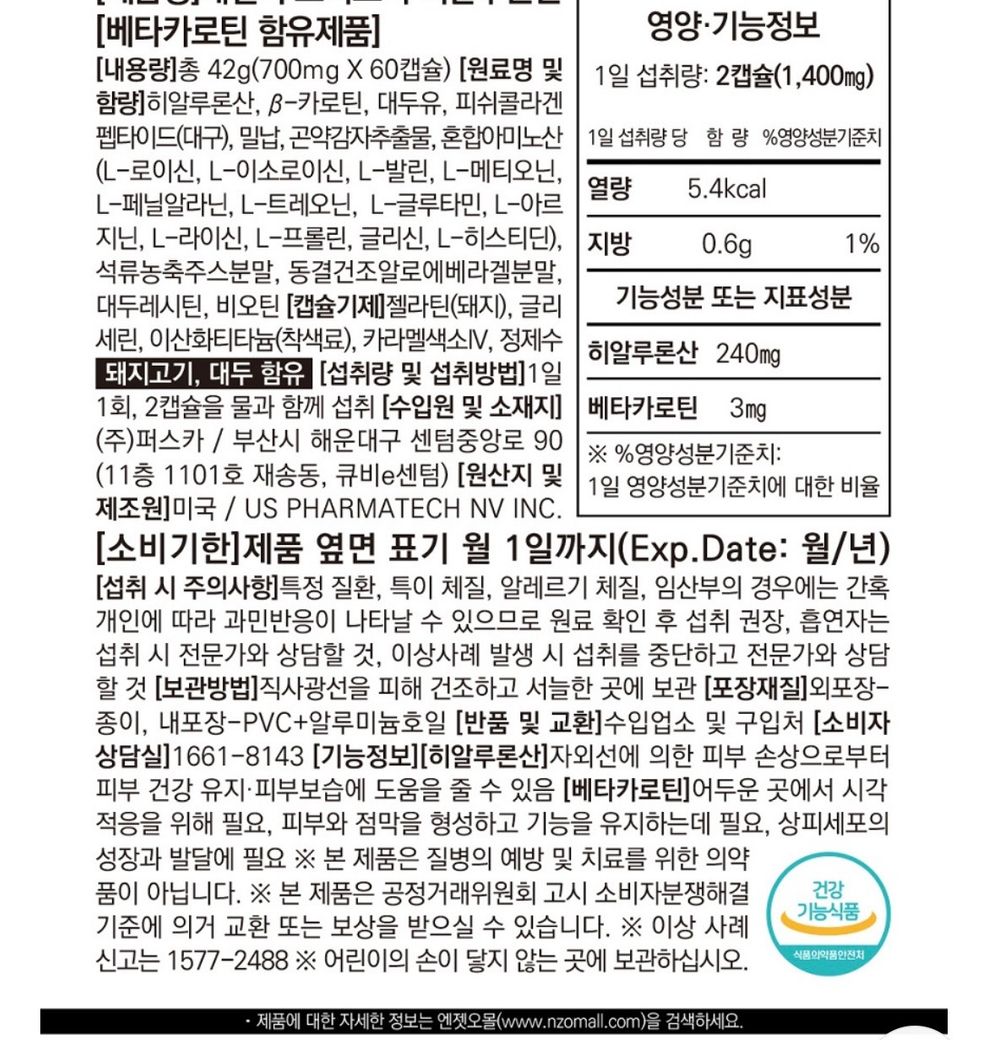 히알루론산과 베타카로틴 위주라 임산부도 섭취 가능하지만,