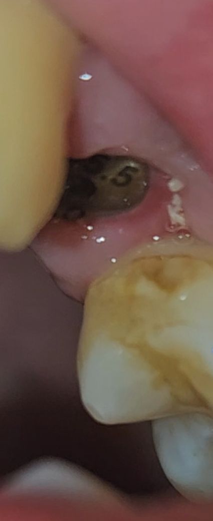 식립한지 3주가 넘었는데 하얀색 점과 옆쪽에 빨간색으로 부어있습니다. 3주정도가되면 원래 잇몸이 다 아무는거 아닌가요?? 염증이 생긴건가요?