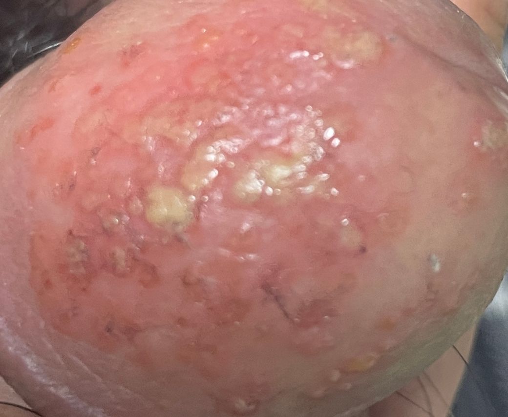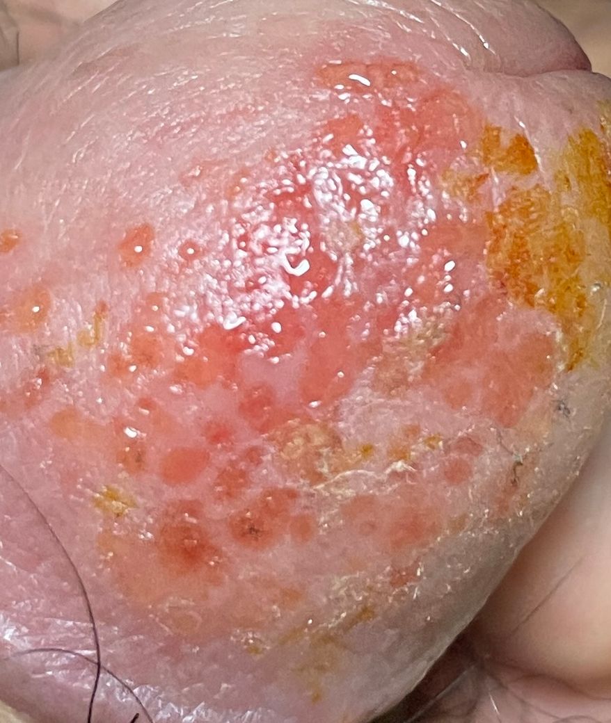 이게 재발을 한거고 처음엔 엄청 작은 노란고름이 찬 물집이였는데 초발도 한 3주 정도 갔구요 첫번째 비뇨기과를 방문하니 검사를 해볼 필요는 있지만 헤르페스라고 하여 항생제와 갖가지 약을 받고 네오덱스라는 연고를 바르니 한 3~4일만에 호전돼 저도 검사로는 음성이 나왔지만 어느정도 헤르페스구나 하고 인지하고 있었습니다. 완치 후 또 관계를 갖게 되니 이틀만에 똑같은 자리에 재발하여 전에 처방받은 네오덱스를 발랐습니다 그랬더니 상태가 너무 안좋아져서 다른 비뇨기과를 방문하였습니다 혈액검사(6주차)가 정확하니 해보자고 하셔서 진행했습니다 결과는 음성이였고 병원에서 처방받은 항바이러스제는 듣지도 않았습니다 그래서 베어로반? 이라는 연고도 듣질않아 근처 또 다른 비뇨기과에서 연고라도 다시 처방받자는 심정으로 갔는데거기 계시는 선생님께서 돋보기로 한번 보시고는 헤르페스 단순포진이 맞고 모든 검사로 검출이 안되는 질병이다 본인이 봤을땐 맞다고 하시며 아시클로버를 처방해주셨습니다 감기같은거라 이거 바르면 금방 낫는다고 좀 발랐는데 오히려 더 심해져서 임의로 바르는 것을 중단하고 혈액검사를 했던 두번째 병원에 가서 전에 처방해준 약이 듣지 않는다고 솔직하게 말씀드렸습니다 그래서 다시 항생제 주사를 맞고 약을 새로 처방받았는데 아시클로버를 처방해주셔서 이건 집에 있으니까 빼고 먹는 항생제 독시사이클린과 셉트린정을 처방받고 일주일동안 정말 술 한번 안마시고 정확히 약을 먹었습니다 그럼에도 저 부분이 더 넓어지고 덧나기만 하고 호전이 안됩니다 너무 막막하여 질문합니다