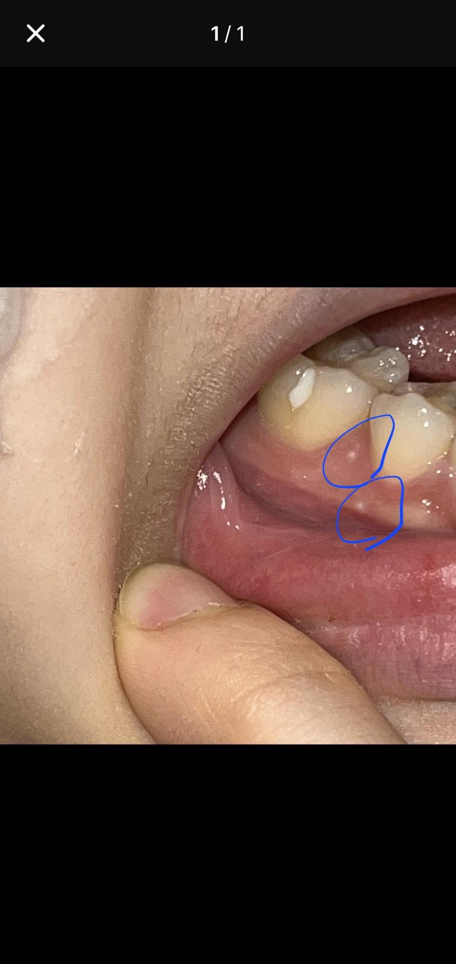 사진처럼 잇몸에 하얀 점 두개가 생겼는데요