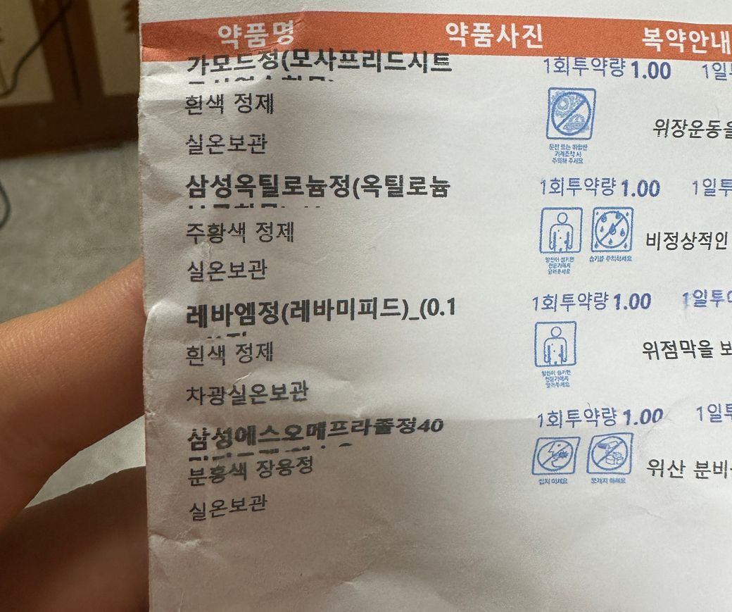 다음약을 속이 좀 울렁거리고 쓰려서 받았는데요