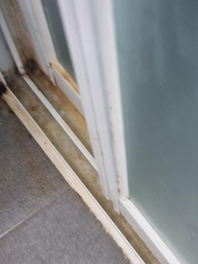 욕실 창 틈입니다 계속 물이 고여 곰팡이가 너무 심하게