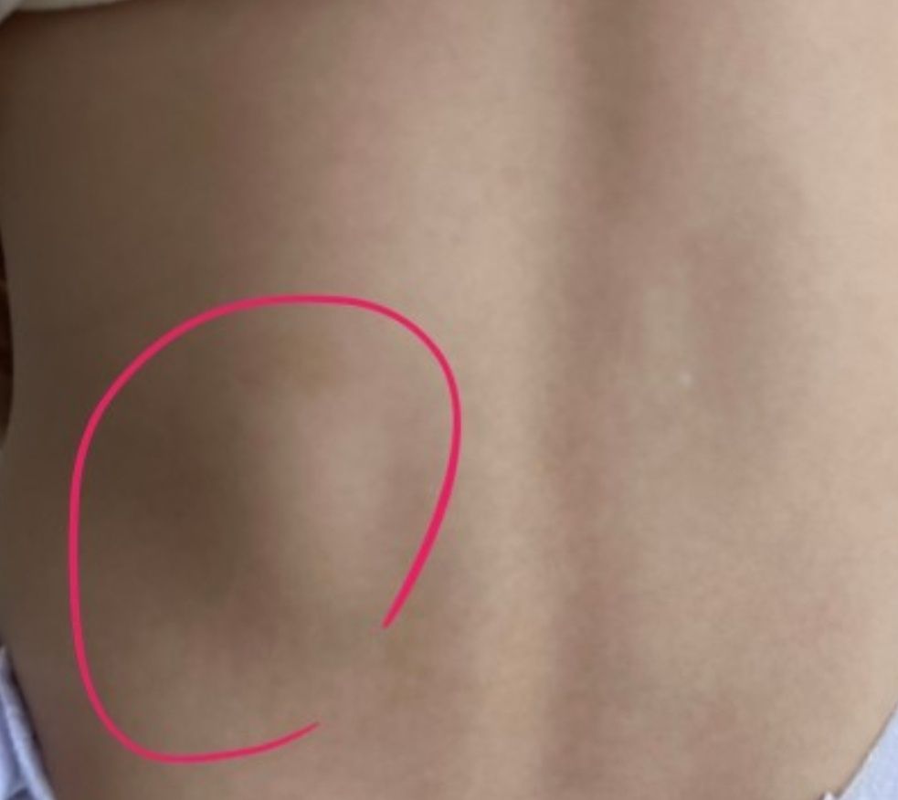 현재 사진만으로 원인을 알기는 어렵습니다. 내원하시어 해당 부위 종괴로 인한 것인지 척추 측만증이 있지는 않은지 확인해보는 것이 좋겠습니다.